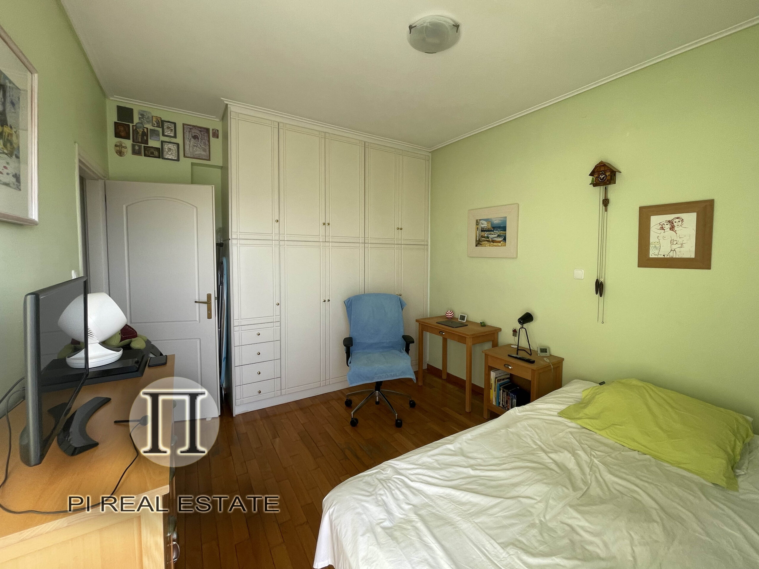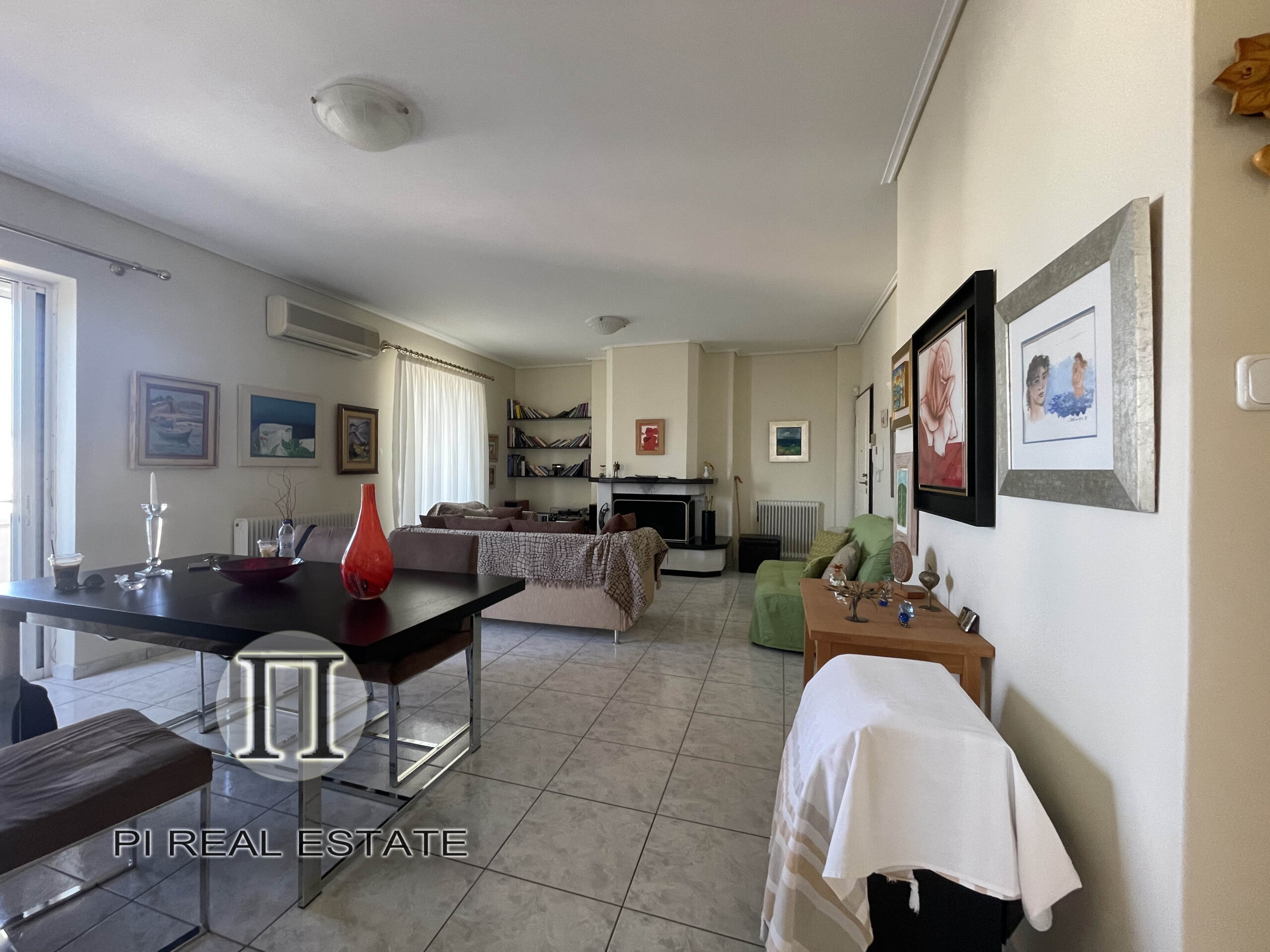 Ανακαινισμένο οροφοδιαμέρισμα 90 τ.μ., 6ου ορόφου, διαμπερές, προσόψεως, 2 υ/δ, κατασκευή ’98, 2 μπάνια, αυτόνομη θέρμανση με κεντρική εγκατάσταση,κλιματισμός, τζάκι, πόρτα ασφαλείας, ηλιακός θερμοσίφωνας ζεστού νερού χρήσης, τέντες, απεριόριστη θέα, αποθήκη 15 τ.μ., κουφώματα αλουμινίου, σίτες.