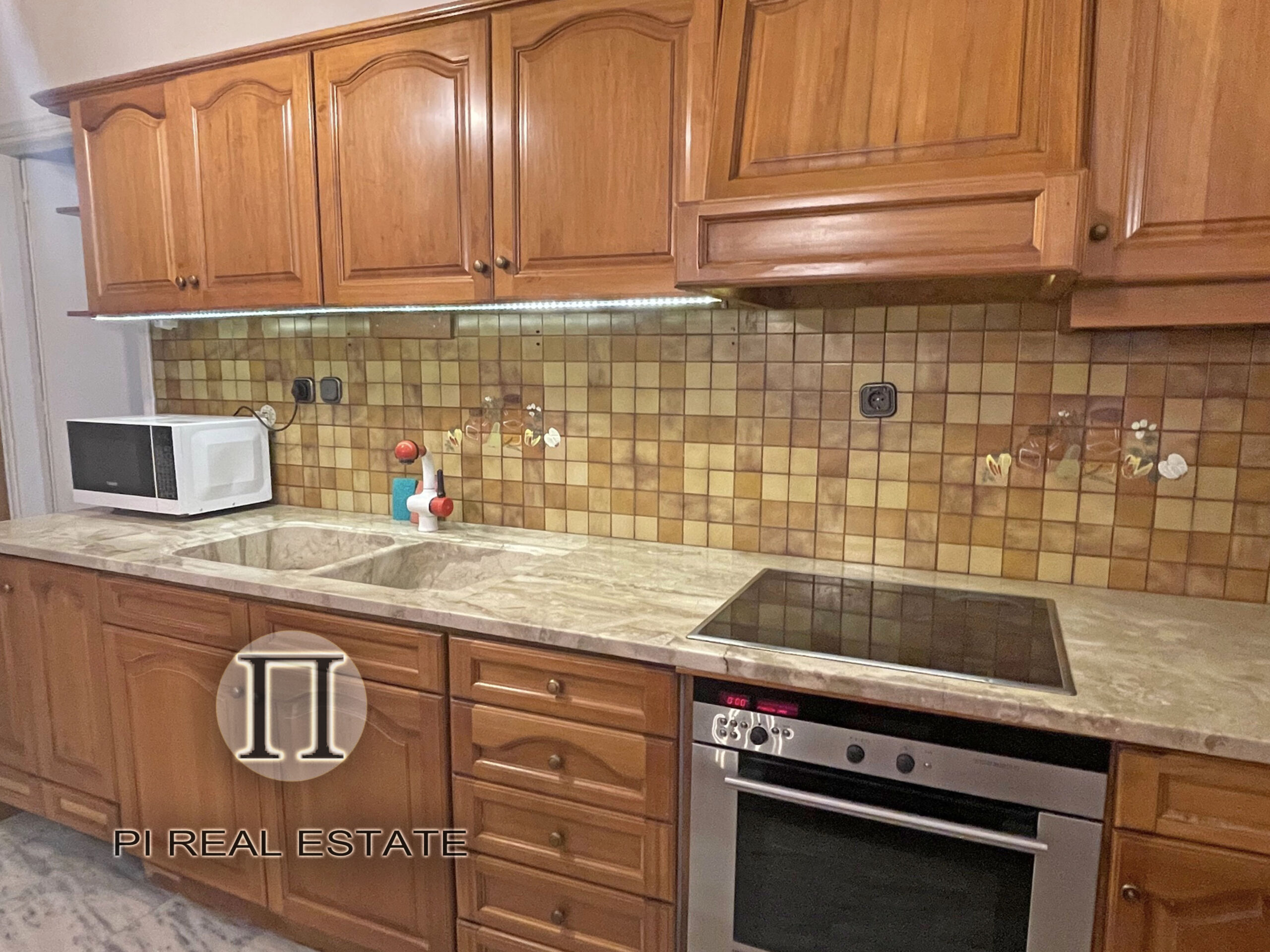 Ενοικιάζεται ανακαινισμένο και επιπλωμένο οροφοδιαμέρισμα 140 τ.μ., 2ου ορόφου, διαμπερές, προσόψεως, κατασκευή 1980 και ανακαίνιση το 2019, 2 υπνοδωμάτια (το 1 master με δικό του μπάνιο), σαλόνι με κουζίνα σε γωνία ενενήντα με το σαλόνι, ένα κοινόχρηστο μπάνιο, κεντρική θέρμανση πετρελαίου, τζάκι, πόρτα ασφαλείας, ηλιακός, τέντες, κουφώματα αλουμινίου, σίτες, χωρίς ασανσέρ, ενεργ. κλ. Γ, δάπεδα: παρκέ, πλακάκι, μάρμαρο.